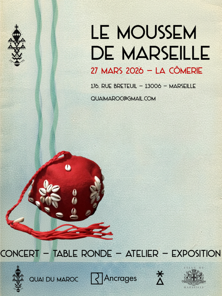 L’association Quai du Maroc, créée en 2025 en partenariat avec Ancrages vous invitent à célébrer le Moussem de Marseille, le vendredi 27 mars à partir de 17h à @La Cômerie.